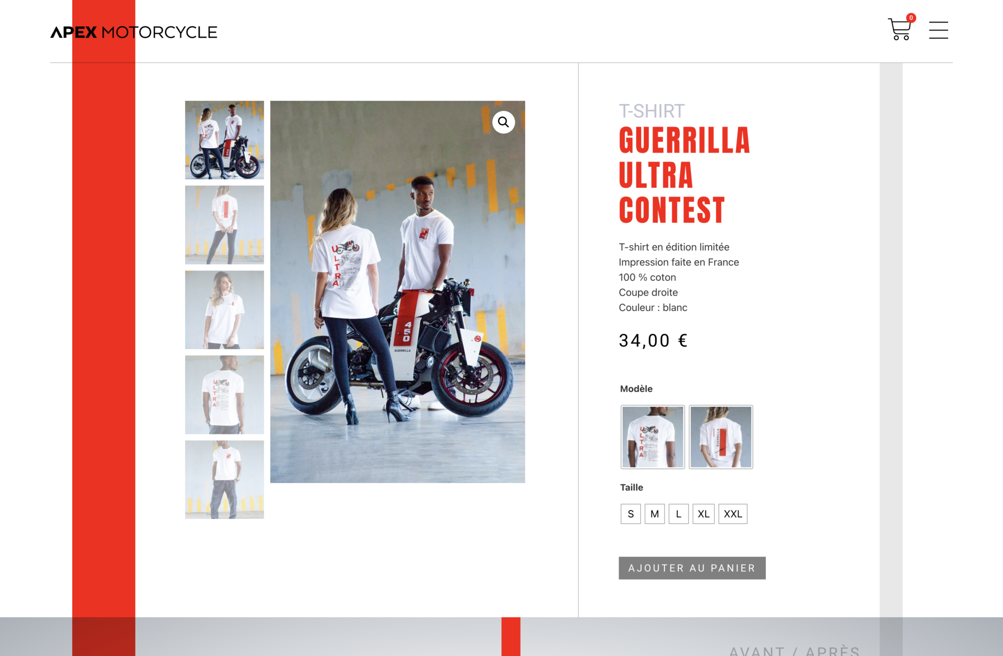 Un concours imaginé de A à Z : identité visuelle, design du t-shirt, maquette et intégration du site. APEX Motorcycle voulait quelque chose qui claque. On a livré quelque chose qui vrombit.