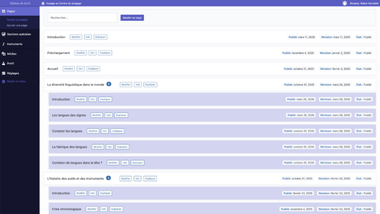 Échanges avec les chercheurs, propositions adaptées au contenu, conception immersive, intégration technique — j’ai accompagné ce projet dans tous ses rôles. Le résultat : une exposition sur le langage humain qui donne autant à voir qu’à comprendre.
